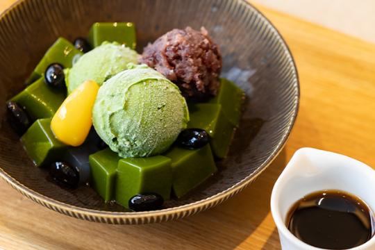 お茶の深い味わいを存分に楽しめるドリンク、最高級の抹茶を使用した 和スイーツやお茶のかき氷、風味豊な抹茶を練り込んだ茶そば、