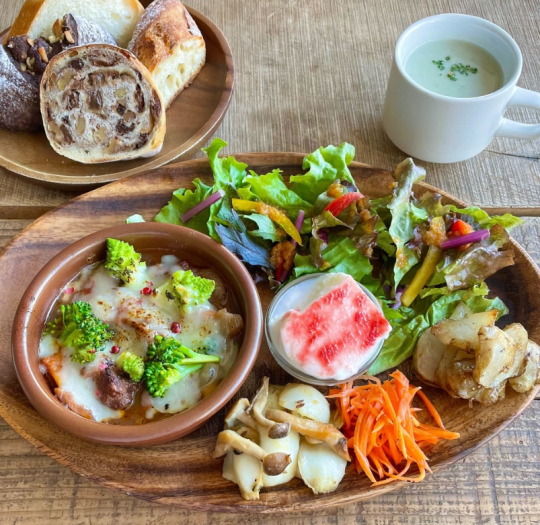 天然酵母の手づくりパンや、身体にやさしい食材を使ったメニューを提供しているベーカリーカフェです。