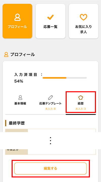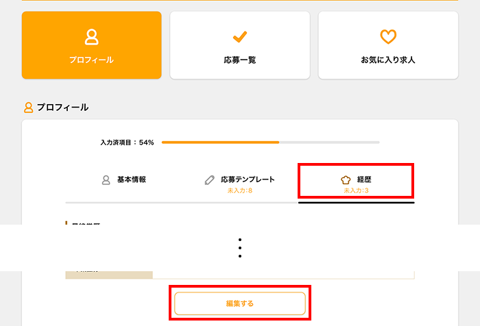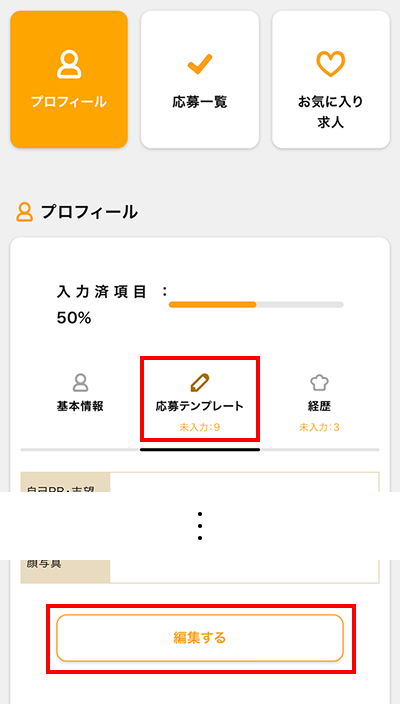 ①ログイン後、マイページの【プロフィール】をタップ
