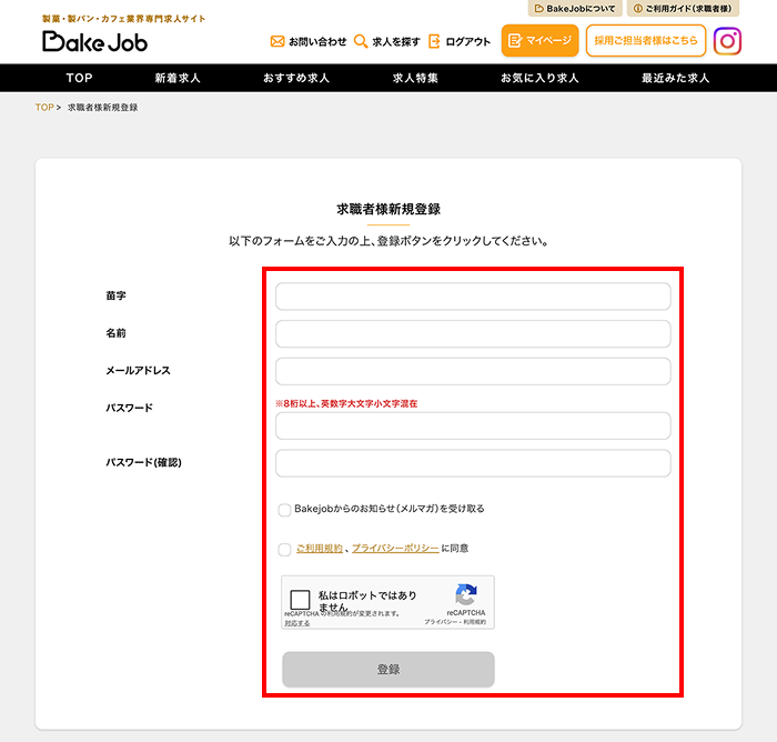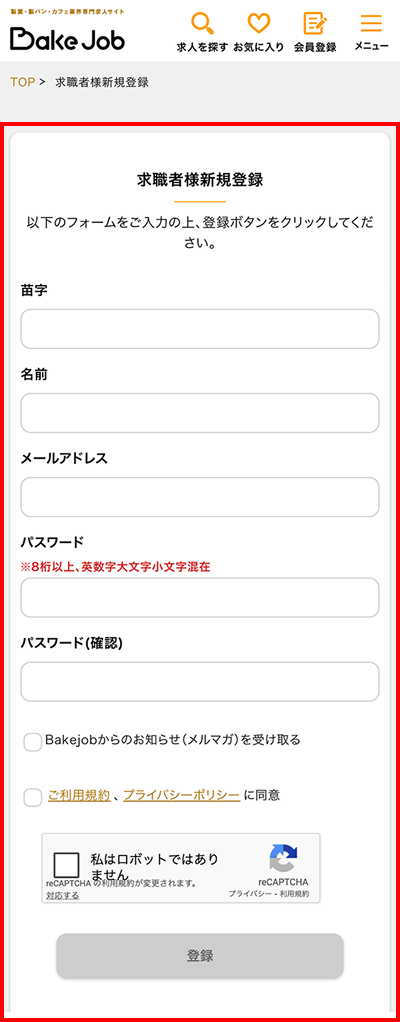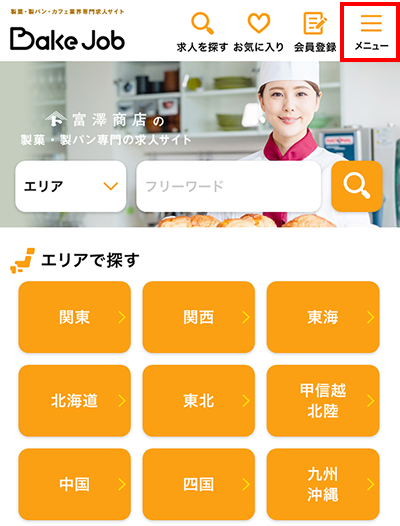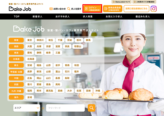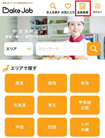 ①サイトTOP右上【新規会員登録(求職者様専用)】をクリック