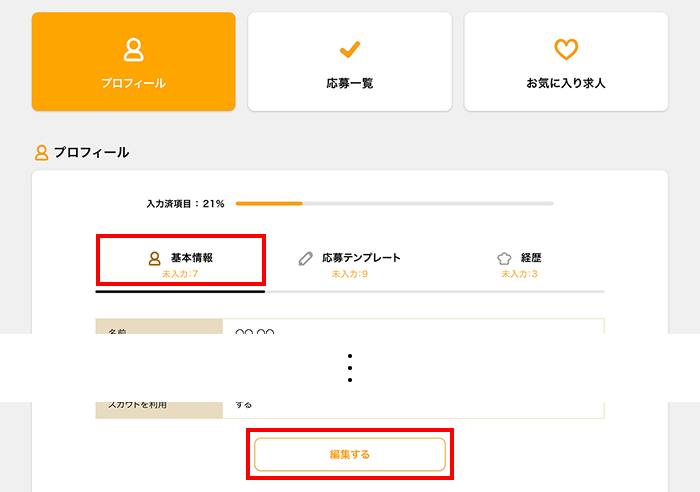 ※【基本情報】の【スカウトを利用】が【する】になっていたらすでに利用できる状態です -