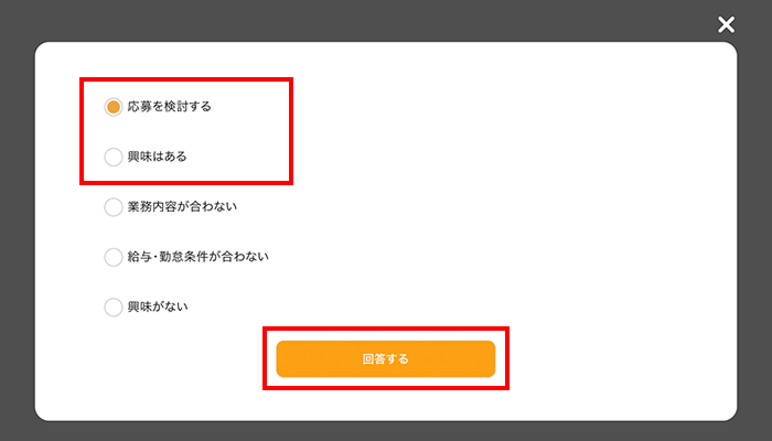 ※「応募を検討する」か「興味はある」を選択した場合はお気に入り求人に追加されます -