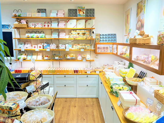 お店の看板商品である黒豆マドレーヌはふっくら丹波産の黒豆をたっぷりと加え、オープンから2週間で4000個以上も販売された話題の商品です!!サクッと生地で中はたっぷりカスタードの草加deシューも人気商品♪