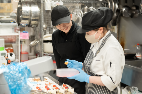 入社後は、粉の計量やフルーツカットなど、簡単な仕込み作業からお任せ。無理のないペースで業務を覚えていただきます。ゆくゆくは洋菓子とパン、両方の製造をマスターしていただくので、スキルの幅を広げることができますよ♪完全週休2日制も導入するなど働きやすい環境が整っています!