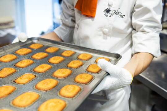 製造スタッフの仕事内容は、堂島ロールをはじめ、様々なモンシェールブランド商品の製造をお願いします。ケーキなどの生菓子、焼き菓子など、最初は仕込みからはじめていただきますが、慣れてきたらデコレーションなどの仕上げもしていただきます。製菓学校で技術を学んだ方、ブランクのある方を歓迎いたします。