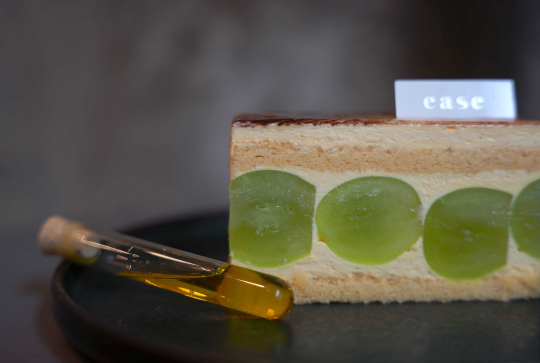 2020年7月グランドオープンから多数のTV・雑誌に掲載いただいている【ease】は、緑を基調としたシックな店内、意外な食材の組み合わせで繊細な味わいのお菓子で多くのお客様にリピートいただいている洋菓子店です。