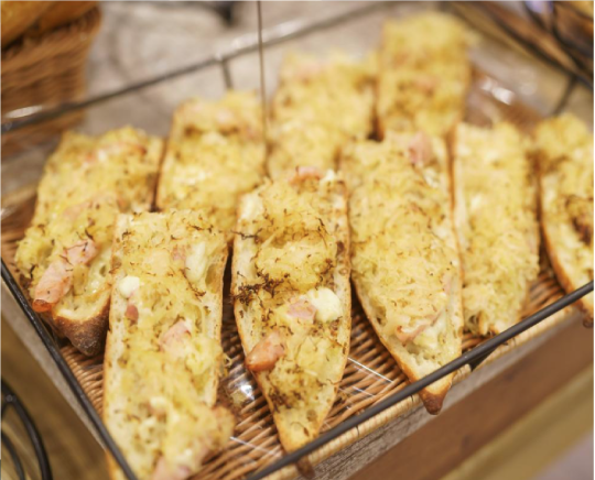 パンのおいしさに違いを出すために、スイートでは素材選びにこだわっています。例えば食パンには、北海道産の小麦粉を20~30%使用しております。また、できるだけ地元産の旬の野菜を使用しており、こだわりのひとつです。パン作りにおいてとても重要な「発酵」については、低温長時間で熟成させた生地を焼き上げたパンもございます。