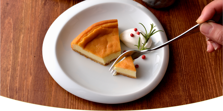 当店のチーズケーキは『ケーキチーズ』とも呼ばれるくらいチーズ含有量の高さが特長です。