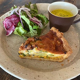 当店は、テレビや雑誌等でも紹介いただいている13周年目を迎える小さなカフェです。インテリア、床などの内装は古材を使用したお洒落な店内となっており、忙しい毎日を少しだけ忘れ、ほっと一息つける空間にしてほしい。そんな思いでお店をつくっています。ネルドリップで丁寧に淹れるコーヒー、料理やケーキもすべて手づくり!ワンちゃんも一緒に来店していただけます。