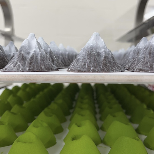 日本に古来より根付いている「雛文化」に着眼し、日本の山々を手のひらサイズで作る、食べる箱庭のような「山菓子」など日本のモチーフや素材を使用して洋菓子の手法で作る、和洋折衷のお菓子屋です。