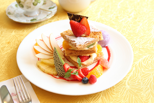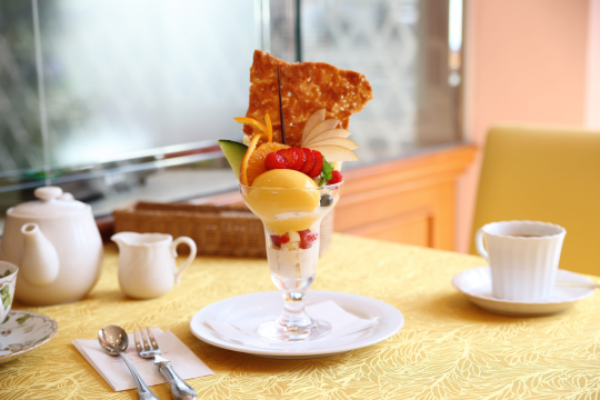 レーブドゥシェフのお店は神戸を中心に8店舗。名谷本店では併設されているカフェで、季節のフレッシュケーキはもちろん、こだわりのアイスクリームを使ったパフェや、ケーキと同じ生クリームを添えたコーヒーなど、召し上がりいただけます。