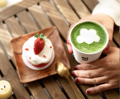 提供されるドリンクや、和スイーツは、厳選された宇治抹茶を使用。