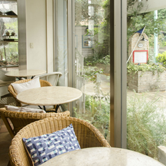 ヨーロッパの田舎の一軒家をモチーフにした可愛らしい外観の当店。広い店内にはシンプルで統一感のあるインテリアで装飾され、落ち着いたナチュラルな空間でお客様をおもてなししています。