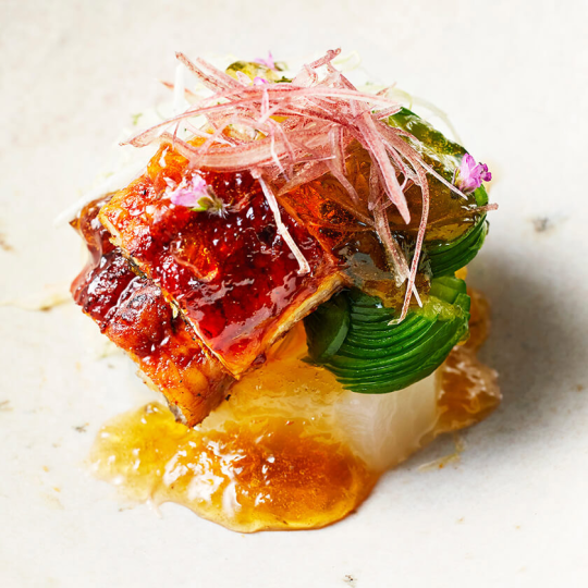 記憶に刻まれる料理が、記憶に刻まれる結婚式を作ると考え、1秒、1℃、1gを探究し、ゲストの五感を覚醒させる料理を提供することで、テーブルの風景と味も記憶に残るよう、感動の一皿を生みだしています。