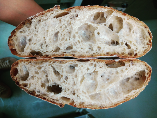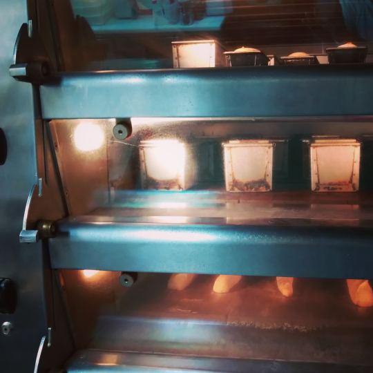 当店では、国産小麦を自家製酵母で長時間発酵させたパンを製造販売しています。