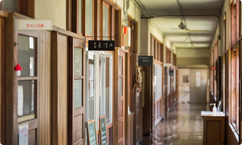 旧質美小学校は当店の他、絵本専門店や雑貨店等がありお子様から大人までお楽しみ頂ける京丹波町を代表する観光スポットです。