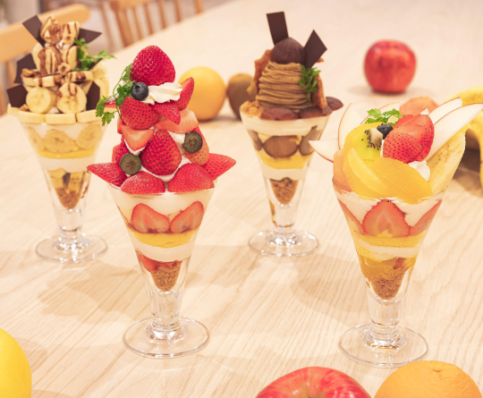 メニューに登場するのは、大切に取り揃えられた選りすぐりのフルーツ。素材本来のみずみずしさを余すところなく楽しめる、品質と鮮度は青果卸ならではです。農家の方々が丹精込めて育てた、その時季一番のフルーツを味わってもらうことが、私たちの何よりの喜びです。