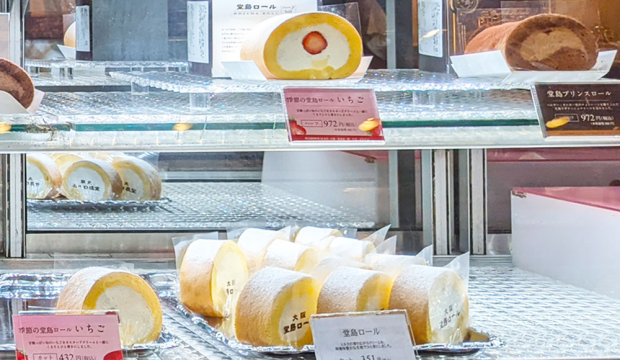 渦巻き型ではない、ひと巻き型のロールケーキで有名な「堂島ロール」。