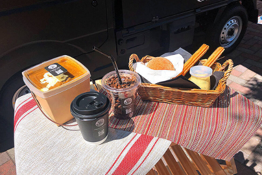 当店はハワイ島のプレミアムコーヒー「カウコーヒーをメインにローカルスィーツのマラサダやロコモコなどをご用意。