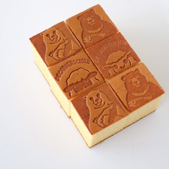 食べやすいキューブの形に切り分け、愛らしい焼印を捺してお届けしています。
