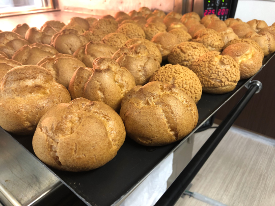 異業種から参画した方には、カスタードクリームの作り方やシューの焼き方などパン・菓子の製造のノウハウをお伝えしています。