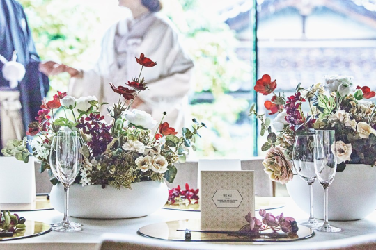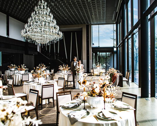 敷地内に広がるのは、四季折々の風情を 感じさせる日本庭園と近代建築が見事に 調和する非日常の美空間。季節の風と 緩やかに流れる時間が、上質な寛ぎと共に 記憶に残る美しい結婚式をお届けします。