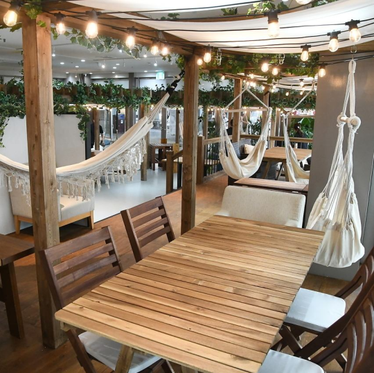 店内は多数のハンモックがと吊られ、リゾートのような非日常感が楽しめます。