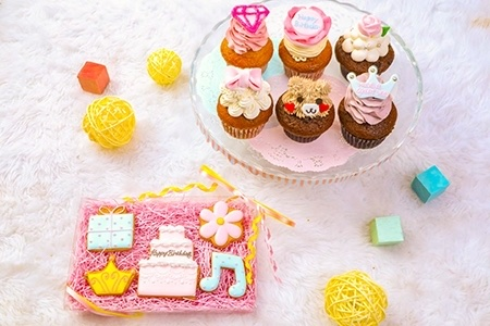 食べるのがもったいないほどの可愛らしいカップケーキとアイシングクッキーは、おいしさにもこだわり、最高級バタークリームをたっぷり使っています。