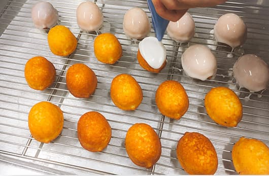入社後は生菓子18種、焼き菓子20種、チョコレート菓子、マカロン、イベント時はその他の商品の製造をお任せします。