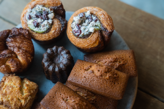 クロワッサン、カンパーニュなどの自家製酵母で作るパンに加え、フィナンシェ、マドレーヌといった焼き菓子の販売もしています。