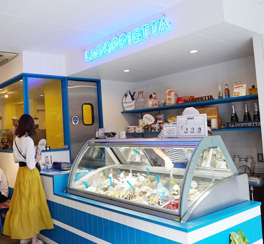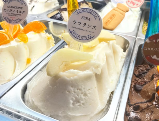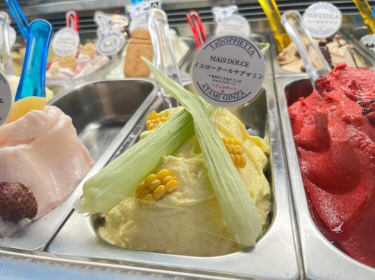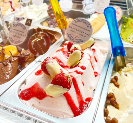 バリエーション豊かなフレッシュ・ジェラートが自慢で、静岡の提携農家で生産された新鮮な果物や野菜、