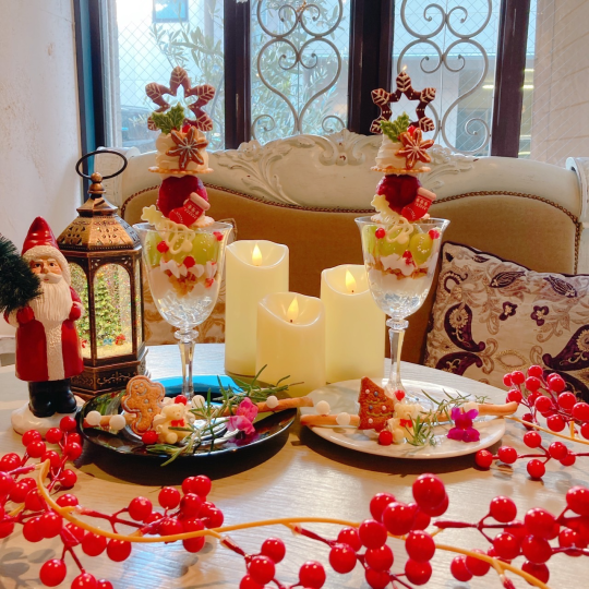 グラスに閉じ込めたパフェ等で表現してお客様にご提供しています。
