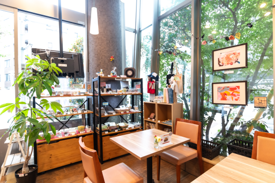 併設のカフェではコーヒー、紅茶の他、おすすめのオリジナルドリンクも提供。