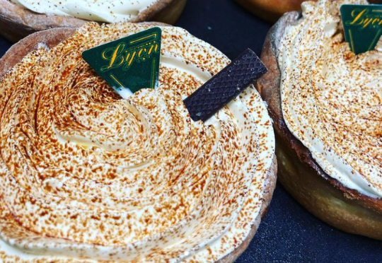 綺麗に整備された駅前広場にある、まるでヨーロッパのカフェのようなたたずまいを見せている「リヨン スイーツ」