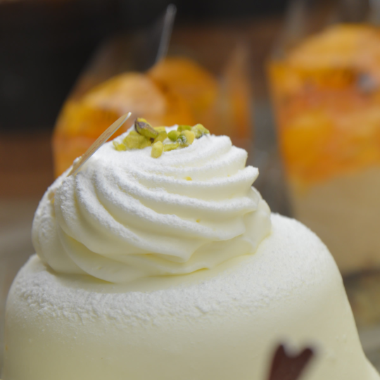 ケーキは生地やムースの組み合わせ、食感等を意識して製造しています。