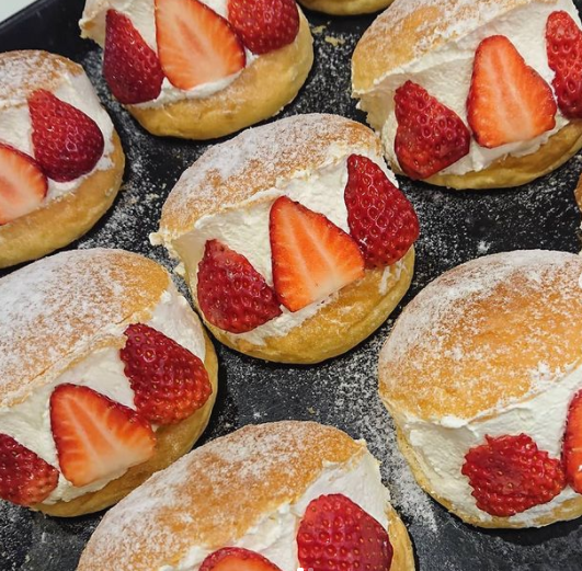 ブリオッシュ生地にたっぷりのクリームを挟んだイタリアの菓子パン、マリトッツォは大人気です。