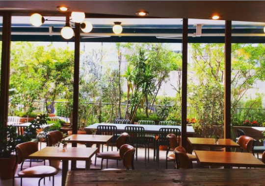 揚げたてのドーナツと旬の果物のケーキ。身体が喜ぶ新鮮なサラダに、そして焼きたてパン。広いテラスから自然光が入る緑の空間で、季節の変化を感じながらひと時を楽しめる空間となっております。