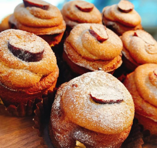りんごケーキはりんごのカタチそのままに、つやつやした丸いケーキを楽しんでいただきます。