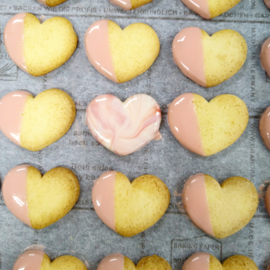 ノワの商品ははっきりとした甘味や、コクを表現し、時代を無視した甘く濃厚な味わいのケーキとストーリーのある焼き菓子作りを心がけています。