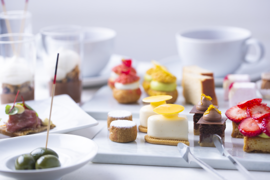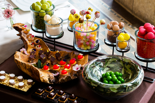 デザートでは、スペインを主軸にしながらもそれにとどまらず、各国の厳選材料や日本の珍しいフルーツもたくさん使っており、上質なデザート、ケーキが並びます。