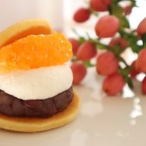 マカロンのようにころんとしたフォルムのどら焼きです。
