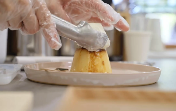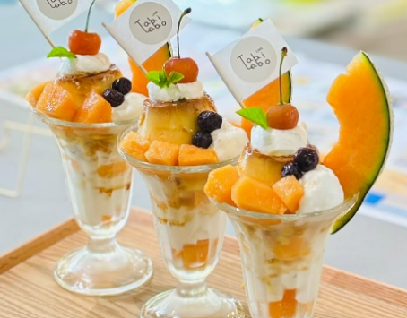 abi Labo CAFEの一番の人気メニューはミルクアイスとむっちり、かためのプリンです。