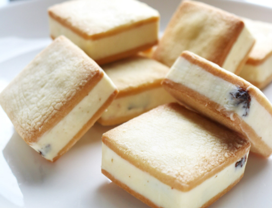レーズンはふっくらジューシーに仕上げています。口どけが良く、ほのかな塩気が絶妙なバタークリームを香ばしいサブレにバランス良く丁寧にサンドした一品です。