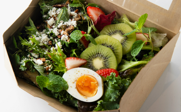 ランチからディナーまでさまざまなシーンで利用でき、夜はお酒や音楽も楽しめる大人なソーシャルスポットに。コンセプトは「体にも環境にも美味しい食」。