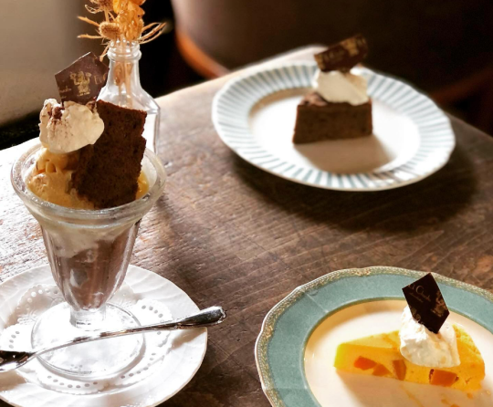 店内では、チョコレートの販売と喫茶を併設しています。 本店限定の「サターンケーキ」や看板商品の「塩チョコレート」などもご用意しています。 喫茶ではレトロな空間の中でチョコレートパフェやケーキ、チョコレートドリンクなどをご提供しております。