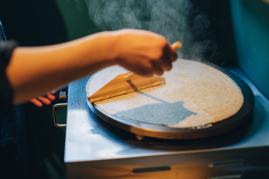 asatteのクレープでは、全粒粉を使用したオリジナルクレープやシーズナルクレープ、自家製ジェラート、ドリンクを販売しております。
