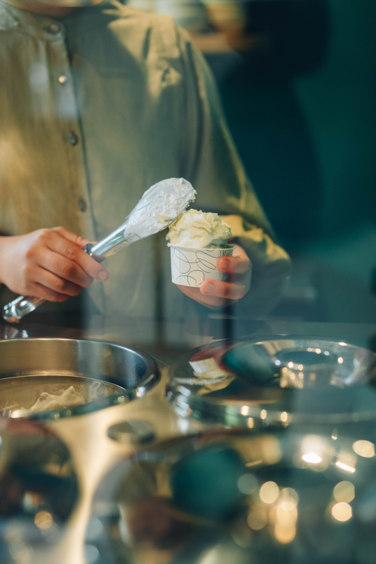 店内では、全国さまざまな土地で作られる美味しい食材を使い、素材の味を生かしたオリジナルジェラートや加工品を全て手作りで製造をしています。asatteの裏庭”ではスタッフによるチャレンジショップを開催したりと、今より少しだけ先の未来をイメージした取り組みや挑戦ができる場となっています。