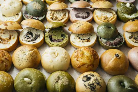 約20種類のベーグルを、季節の旬を大切にしてみんなに愛されるベーグルを目指して日々、ベーグル作りをおこなっています。