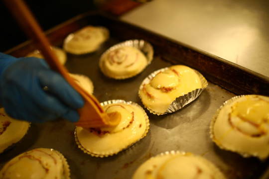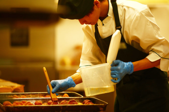 ・天候や気温、水温などの条件を考慮しながら、手作業で丁寧にパンを作れる。