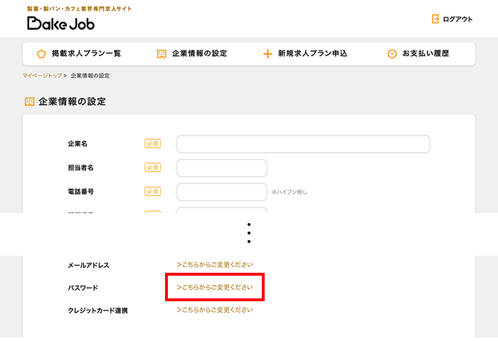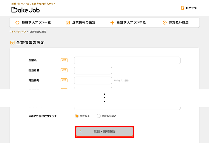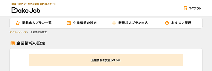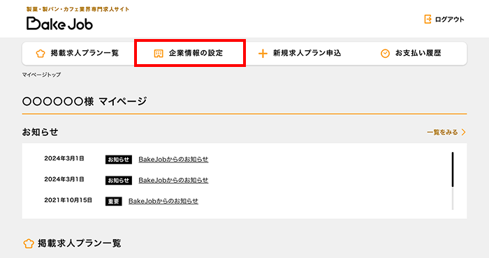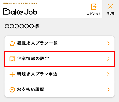 ①ログイン後、マイページの【企業情報の設定】をクリック